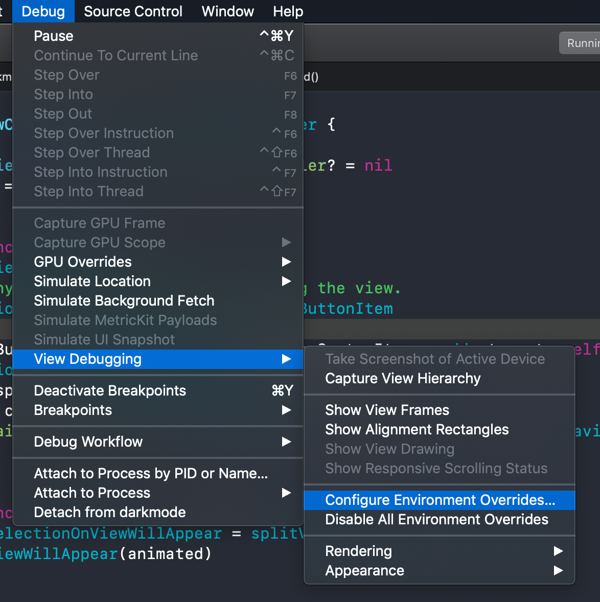 You can also find it in Debug > View Debugging > Configure Environment Overrides
