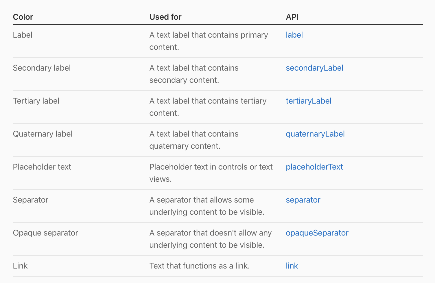 This system colors can be categorized into 2 groups tint colors and semantic colors.