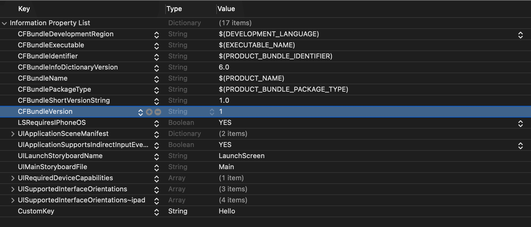 print(Bundle.main.object(forInfoDictionaryKey: "CustomKey"))