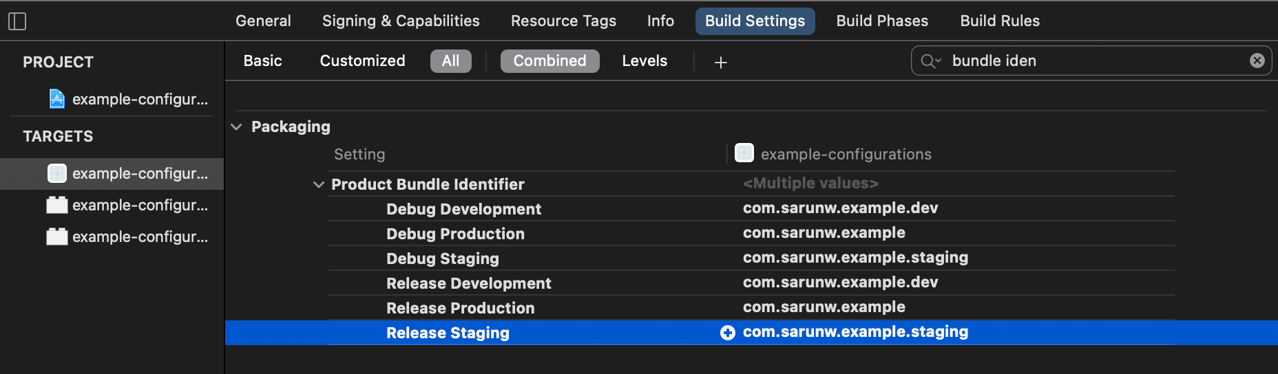 At this point, we have a separate Xcode configuration for each environment. There are many things you can do with it. In this article, I will show you some editing that I usually do.