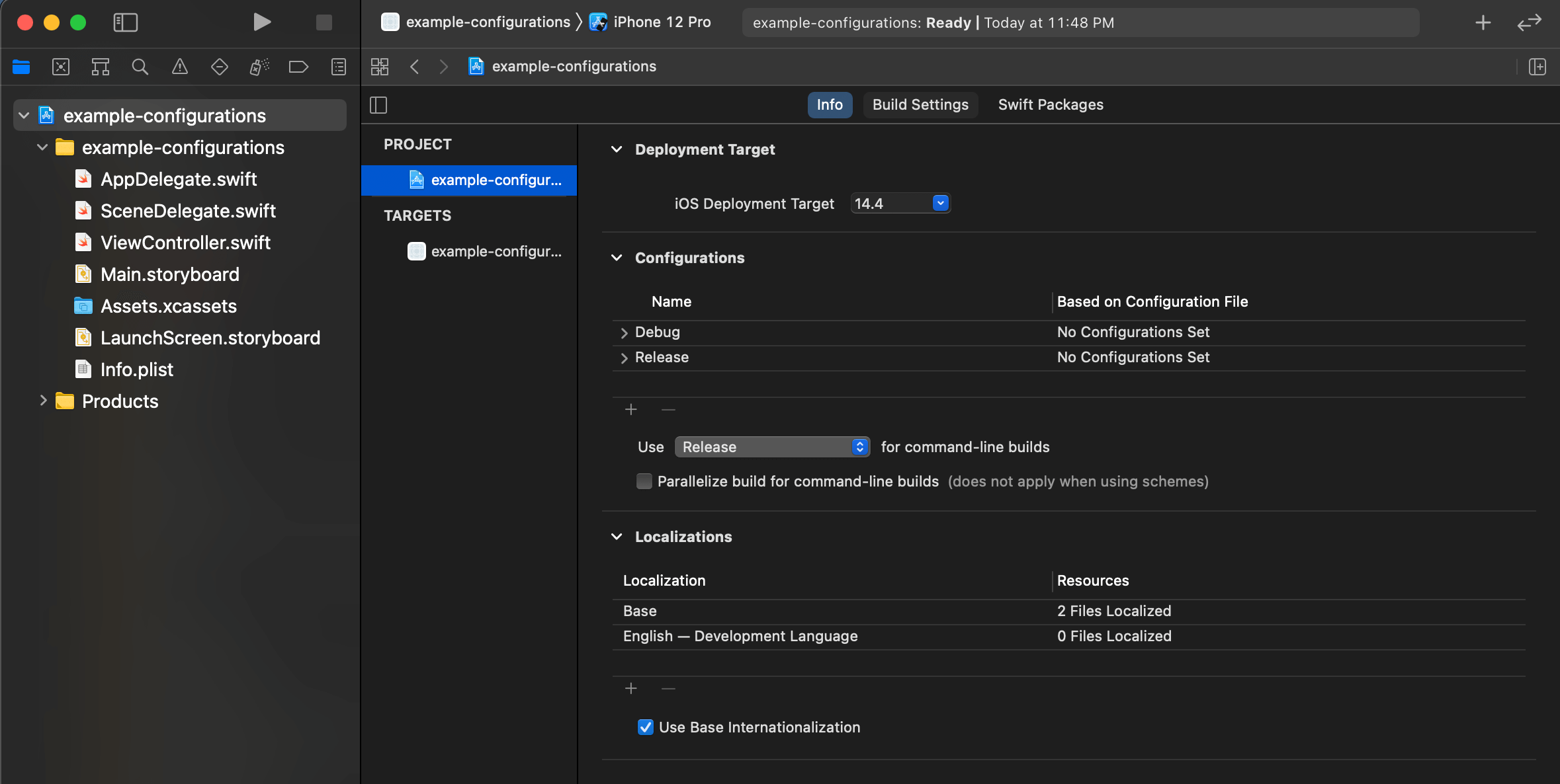As I mentioned earlier, every new Xcode project comes with two default configurations, Debug and Release.